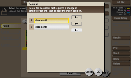 Change the file sequence (Combine TX sequence) if necessary, then tap [OK].