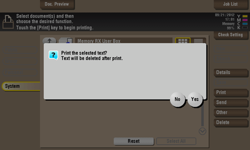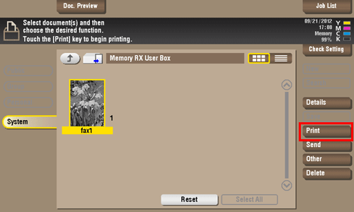When you print a fax, it is deleted from the Memory RX User Box automatically.