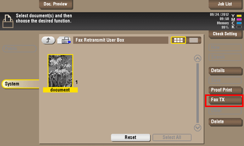 When you retransmit a fax, it is deleted from the Fax Retransmit User Box automatically.