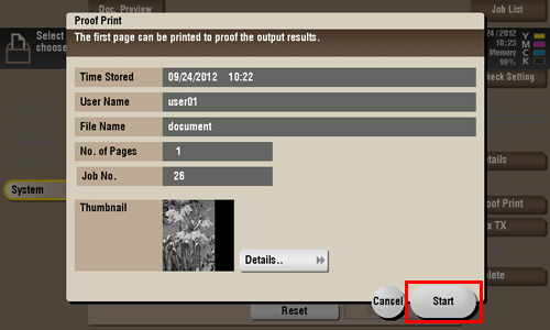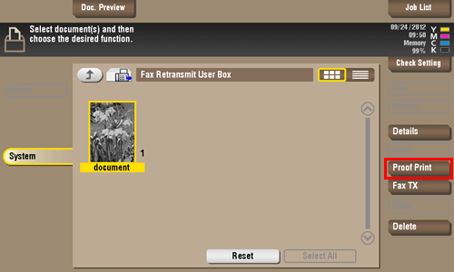 Select a fax, then tap [Proof Print].