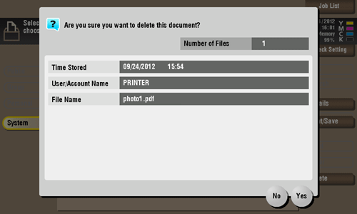 Select a file, then tap [Delete]. The file is deleted. You can select multiple files and delete them simultaneously. Check the file details, then tap [Yes].