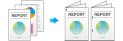 Each set of sheets can be stapled (at a corner or at two positions) and output automatically. This function is useful for preparing a project proposal or other booklet materials.