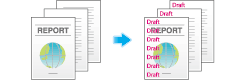 Text such as "PLEASE REPLY" and "DO NOT COPY" are printed on the first page or all pages. You can select the text to be added from the registered fix stamps and arbitrary registered stamps.