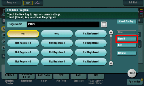 Program is a function to register a combination of frequently used option settings as a recall key. The program to be registered in Fax/Scan mode is called Fax/Scan program.