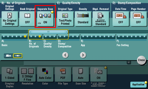 In [Separate Scan], you can switch between ADF and Original Glass to scan the originals.