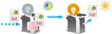 While this machine is inactive, for example, during breaks or night hours on working days, press the Power key to set the Sub Power Switch OFF mode, reducing the power consumption. It is impossible to print faxes received in Sub Power OFF mode. To print them, press the Power key to release the Sub Power OFF mode.