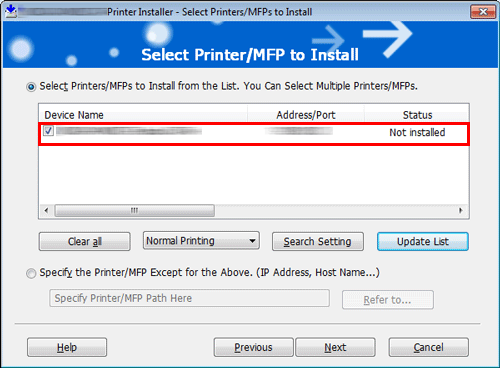 In such a case, select [Specify the Printer/MFP Except for the Above. (IP Address, Host Name...)], and