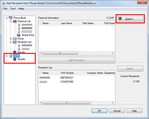If you are using the LDAP server or the Active Directory of Windows Server, you can search for a recipient on the server.