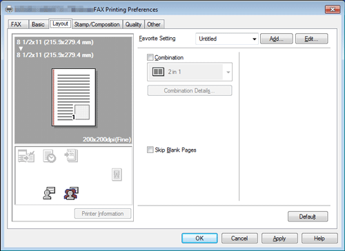 In the [Layout] tab, you can configure layout settings for fax sending.