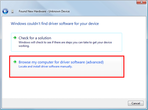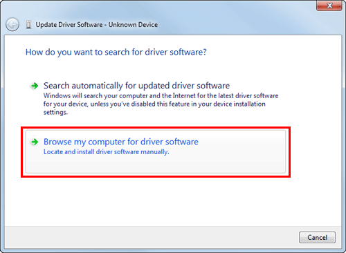 In the screen in which to select how to search the driver software, click [Browse my computer