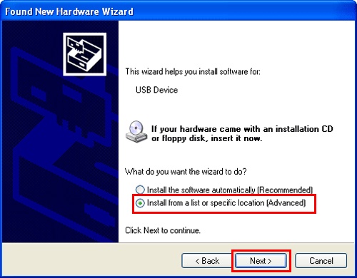 Select [Install from a list or specific location (Advanced)], then click [Next].