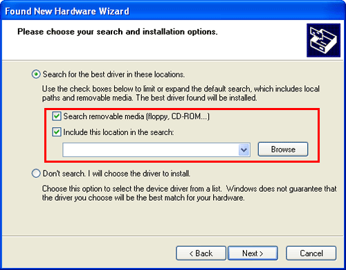 Under [Search for the best driver in these locations.], select [Include this location in the