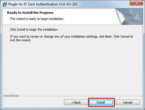 This completes the installation of Data Administrator PlugIn for IC Card Authentication Unit AU-201, which completes the setup.