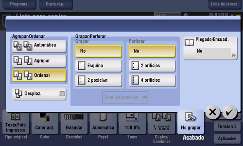 [Perforar] | Seleccione la posición de encuadernado al perforar hojas. Para obtener más información, consulte Aquí. |