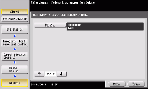 Vous pouvez également enregistrer une destination de boîte utilisateur en utilisant Web Connection. Pour des détails, voir ici.